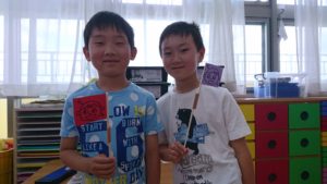 「ウソだ~ 」「先生が書いたんでしょ??」と、子どもたち。