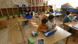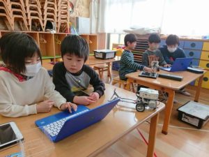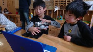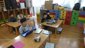 ペアの子と話し合って、最初と最後に挨拶を入れてみたり、画面に顔を表示させたり、光らせてみたりと様々な工夫を凝らしてしていました。当たり機能をつけていたペアもあり驚きました!