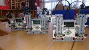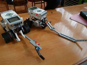 前回のお掃除ロボットにカラーセンサーを付けて、より正確にたくさんのゴミを円の外に出せるようにロボットの改造に力を入れていました。