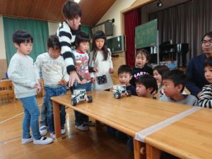 レッスン終了後に嬉しそうに自分達で作った自動販売機を見せる子ども達。可愛かったです!